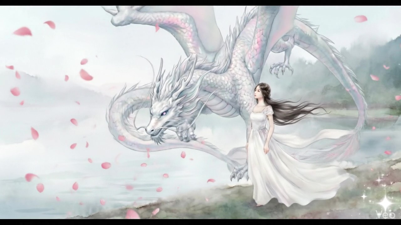 湖と龍と花びらの動画